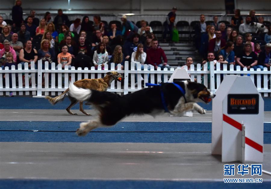 5月19日,在德國(guó)多特蒙德舉行的寵物展上,兩只狗狗參加速度競(jìng)賽。 為期三天的德國(guó)多特蒙德“狗和貓”寵物展19日落幕。寵物展期間,人們帶著自己的“萌寵”來到會(huì)場(chǎng),參與寵物跳水、舞蹈、選美等趣味比賽,并與其他寵物愛好者及展商交流互動(dòng)。 新華社記者逯陽(yáng)攝