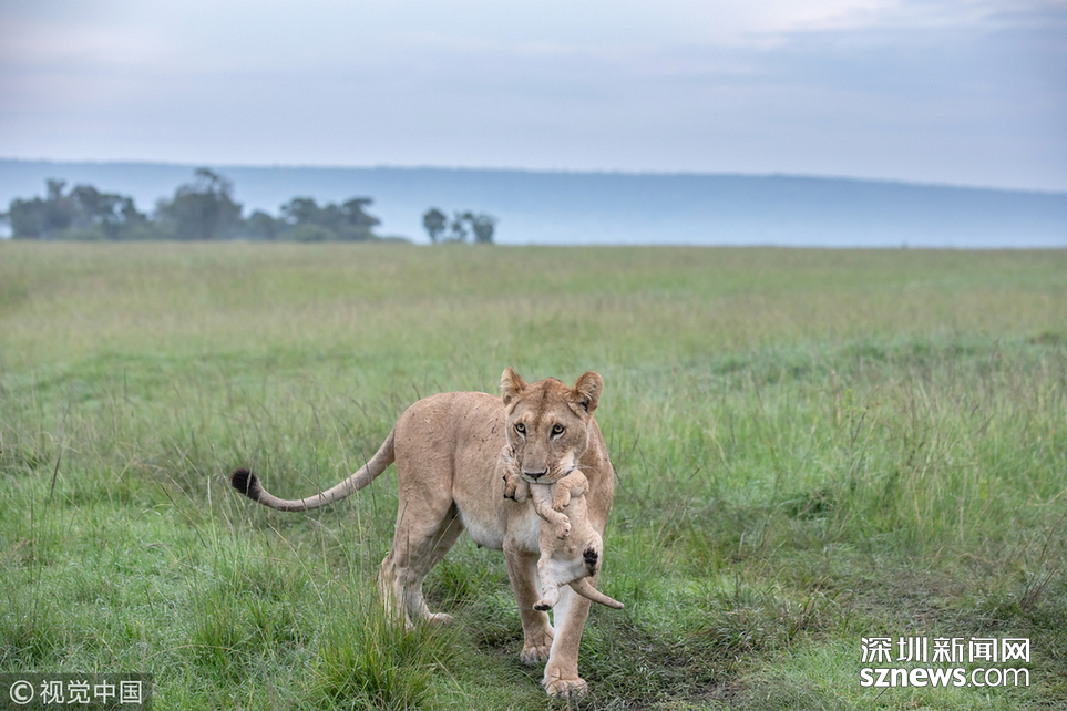 英國野生動物攝影師Paul Goldstein在肯尼亞的馬賽馬拉拍到了一頭小獅子被媽媽教訓的場面。