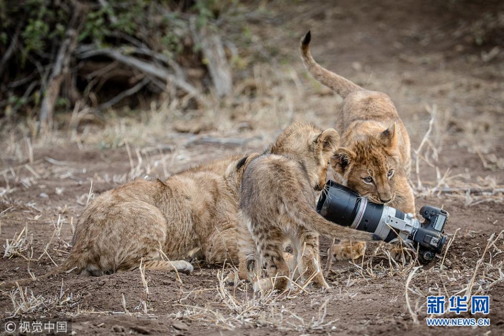 近日,非洲博茨瓦納馬沙圖野生動(dòng)物保護(hù)區(qū)內(nèi)一頭獅子叼起攝影師掉落在地上的相機(jī),之后還將相機(jī)交給小獅子們玩耍,看起來十分好奇,而攝影師非常無奈?,F(xiàn)年57歲的叢林探險(xiǎn)家Barbara Jensen Vorster在一輛越野車上為馬沙圖野生動(dòng)物保護(hù)區(qū)的獅群拍照時(shí),相機(jī)不小心掉到了地上。砰的一聲響驚動(dòng)了母獅子,它向攝影師方向移動(dòng),迫使探險(xiǎn)隊(duì)撤退。(圖片來源:視覺中國)