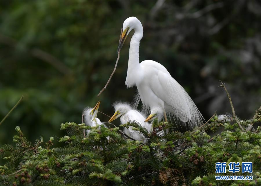 在江西省南昌市新建區(qū)象山森林公園內(nèi),白鷺和自己的雛鳥(niǎo)在一起(5月21日攝)。 近日,在江西省南昌市新建區(qū)象山森林公園內(nèi),已安家筑巢的大批鷺鳥(niǎo)陸續(xù)孵化出了后代。象山森林公園有著“鷺鳥(niǎo)王國(guó)”的美譽(yù),生態(tài)環(huán)境良好,每年都會(huì)吸引白鷺、蒼鷺、夜鷺等種類的鷺鳥(niǎo)飛抵棲息和繁衍后代。 新華社記者 彭昭之 攝