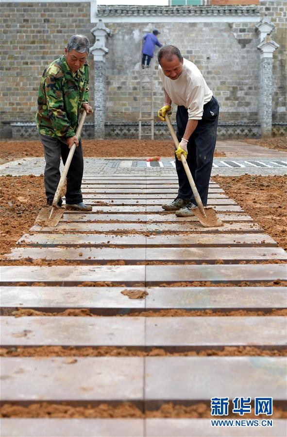 4月28日,在江西省南昌市南昌縣岡上鎮(zhèn)省級(jí)文物保護(hù)單位“吳氏家廟”內(nèi),搶修工程隊(duì)的工人在鋪磚。近年來(lái),江西省南昌市南昌縣推動(dòng)古村落保護(hù)工作。2019年,首批搶修工程隊(duì)進(jìn)駐南昌縣岡上鎮(zhèn),對(duì)當(dāng)?shù)刂氖〖?jí)文物保護(hù)單位“吳氏家廟”及縣級(jí)文物保護(hù)單位“吳培荊堂古建筑群”進(jìn)行搶救性維修。同時(shí)當(dāng)?shù)卣€制定文旅規(guī)劃,讓文物保護(hù)與觀(guān)光旅游相結(jié)合,推動(dòng)鄉(xiāng)村振興。 新華社記者 彭昭之 攝