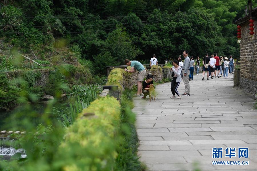 游客在石舍村游覽(5月25日攝)。 石舍村是浙江省桐廬縣富春江鄉(xiāng)村慢生活體驗(yàn)區(qū)中的三個(gè)村落之一,位置偏僻,依溪而居,風(fēng)景秀美。近年來(lái),石舍村結(jié)合古建筑保護(hù)工作,在清潔、美化村莊的基礎(chǔ)上,對(duì)一些廢棄古建筑進(jìn)行修繕,引入咖啡館、民宿等文化創(chuàng)意類(lèi)項(xiàng)目,優(yōu)良的生態(tài)環(huán)境和濃郁的文化氛圍吸引大批游客前來(lái)體驗(yàn),小山村走上了一條發(fā)展美麗經(jīng)濟(jì)之路。2018年,石舍村接待游客10萬(wàn)8千余人次,旅游經(jīng)營(yíng)凈收入1260余萬(wàn)元。 新華社記者 黃宗治 攝