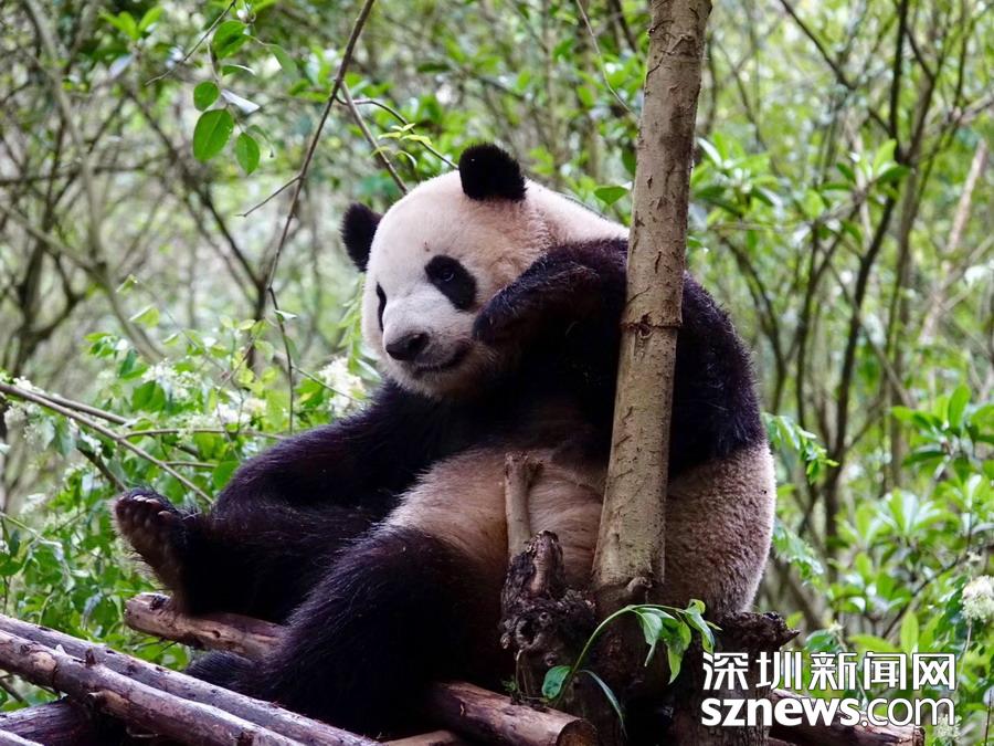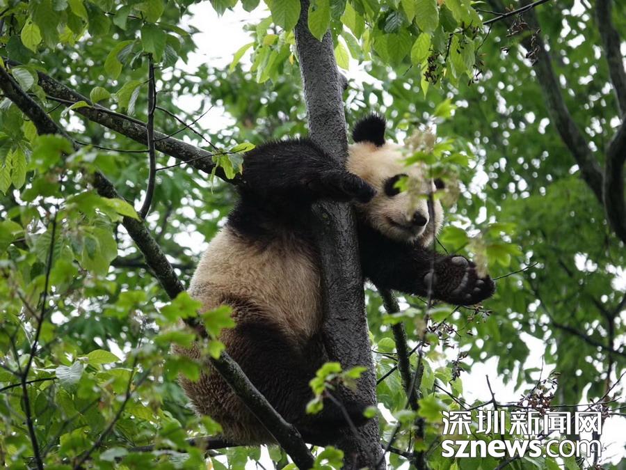 5月25日在中國(guó)大熊貓保護(hù)研究中心臥龍神樹(shù)坪基地的“熊貓幼兒園”內(nèi)拍攝的大熊貓。