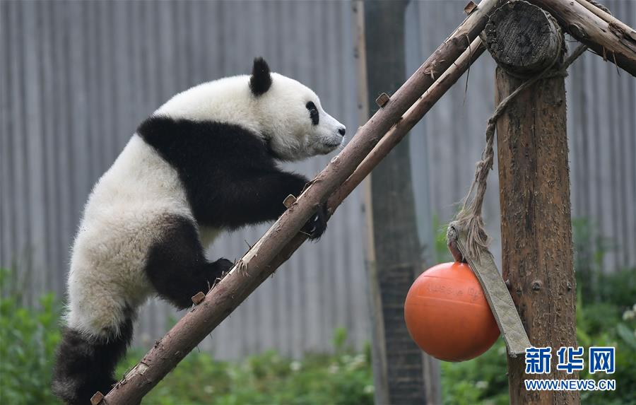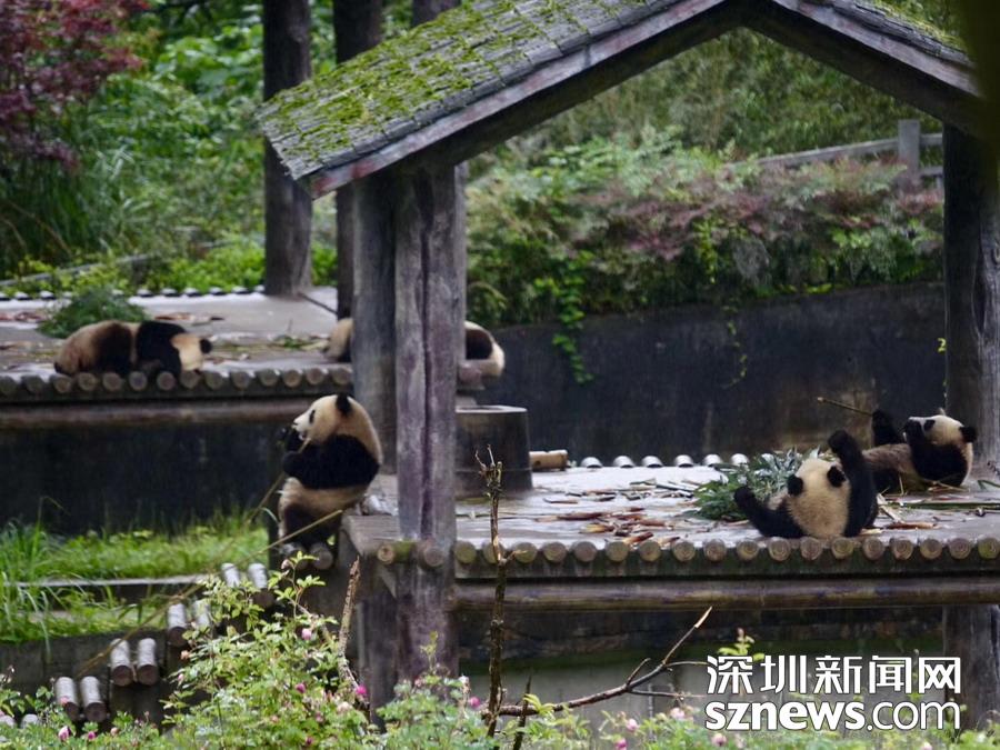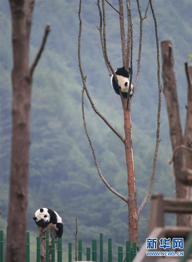 5月26日在中國(guó)大熊貓保護(hù)研究中心臥龍神樹(shù)坪基地的“熊貓幼兒園”內(nèi)拍攝的大熊貓。
