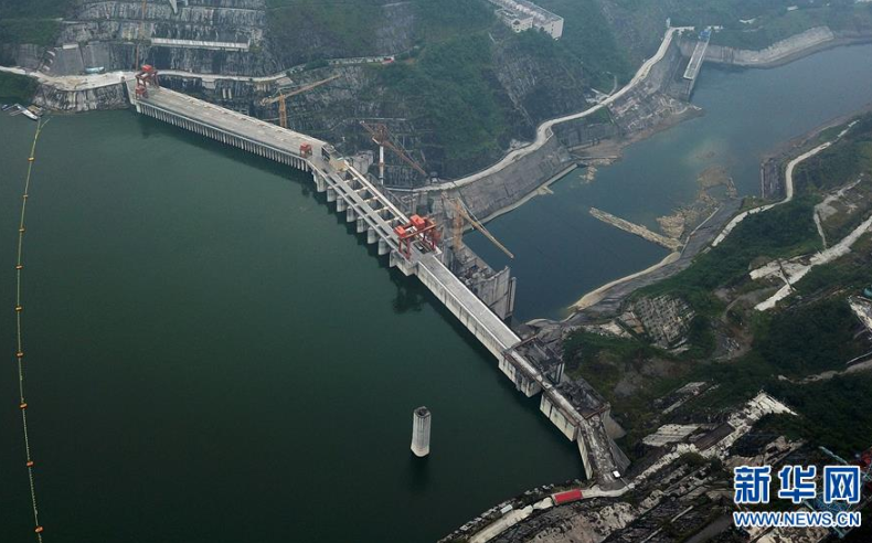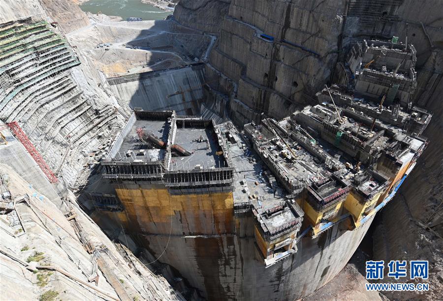 這是用無人機(jī)拍攝的建設(shè)中的烏東德水電站全景(5月30日攝)。 新華社記者陳曄華攝