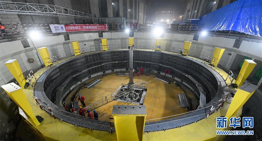 烏東德水電站左岸地下電站主廠房內(nèi)的6號機(jī)組正在建設(shè)中(5月30日攝)。 新華社記者陳曄華攝