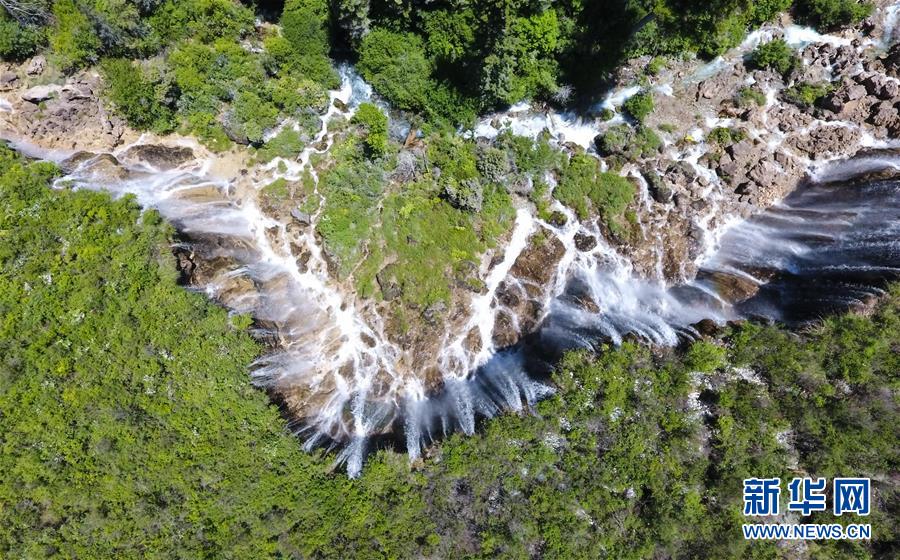 這是九寨溝景區(qū)的諾日朗瀑布景點(diǎn)(6月5日無人機(jī)拍攝)。 新華社記者薛玉斌攝