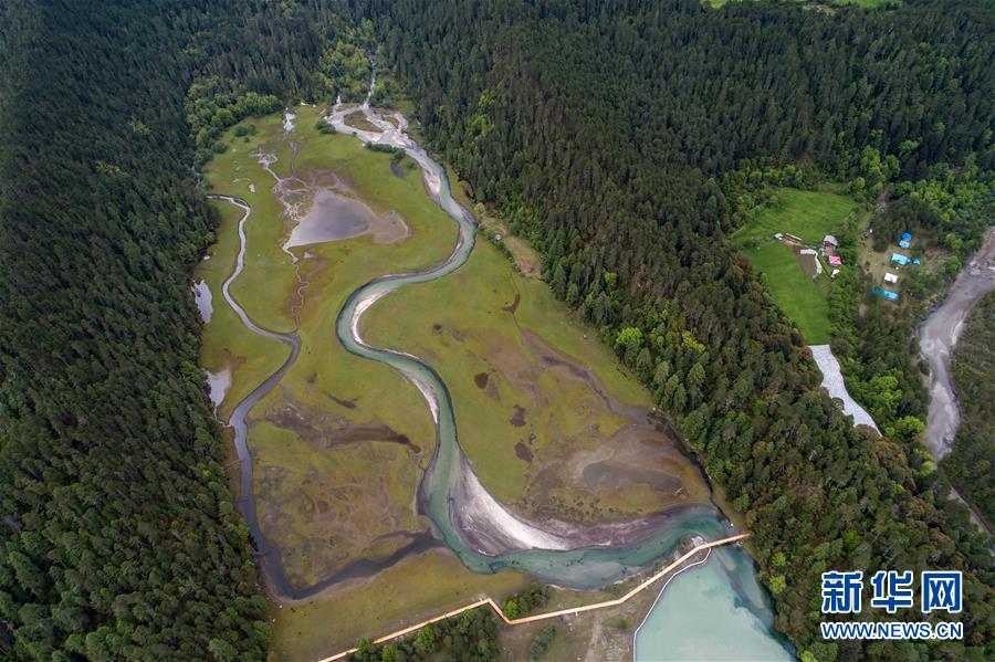 被譽(yù)為“拉薩之肺”的拉魯濕地(6月5日無人機(jī)拍攝)。