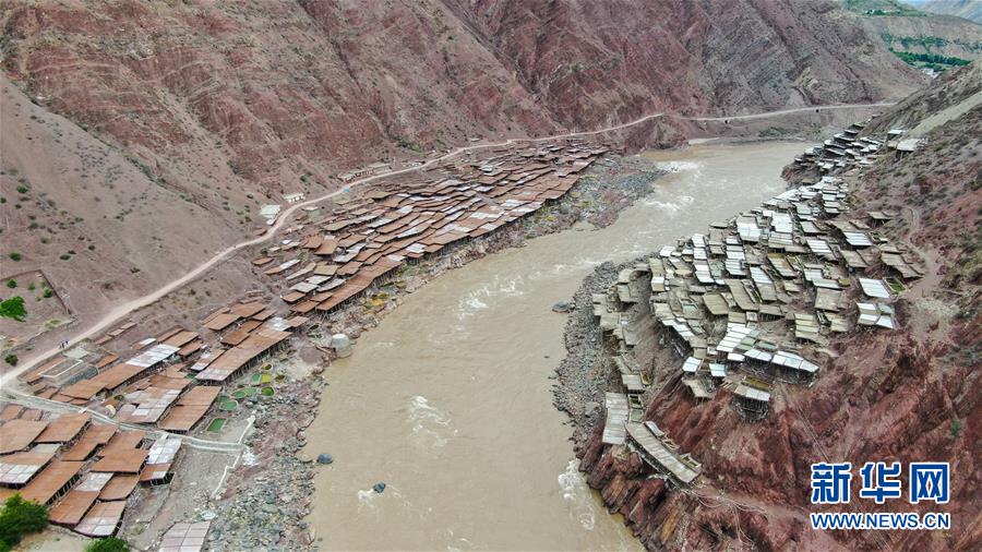 這是位于瀾滄江畔的西藏芒康縣納西民族鄉(xiāng)加達(dá)村的鹽田(6月4日無人機(jī)拍攝)。新華社記者晉美多吉攝