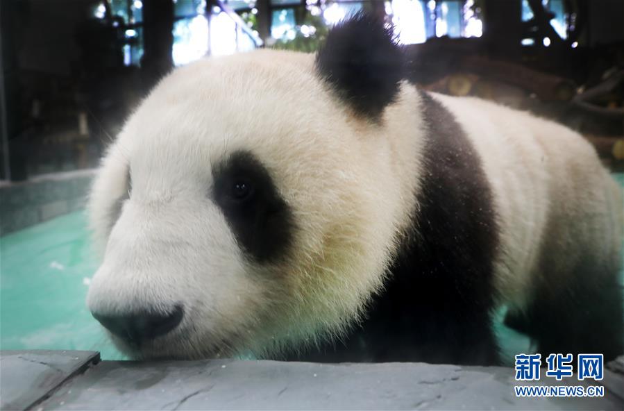 6月18日,大熊貓“和風(fēng)”湊到展館玻璃幕墻邊向外張望。 當(dāng)日,來自四川的大熊貓兄弟“和風(fēng)”與“星光”飛抵上海,正式開始了在上海動物園為期三年的生活。為迎接這對“風(fēng)光兄弟”,上海動物園將原有的大熊貓館擴建并裝修一新,空調(diào)、水池、游樂場以及竹葉儲存間等配置齊全。 新華社記者 方喆 攝