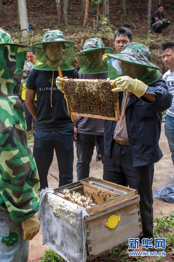 在云南省西盟縣勐梭鎮(zhèn)班母村中華蜂養(yǎng)殖基地,村民在學(xué)習(xí)養(yǎng)蜂技術(shù)(6月16日攝)。 精準(zhǔn)扶貧的春風(fēng),吹到了西南邊疆。在云南省西盟縣的拉祜山寨,人們告別了吃不飽、穿不暖、沒有安全住房的日子。學(xué)習(xí)先進(jìn)技術(shù),改變精神面貌,發(fā)展養(yǎng)蜜蜂、種甘蔗等甜蜜產(chǎn)業(yè),拉祜人的日子越過越甜。 新華社記者 秦晴 攝
