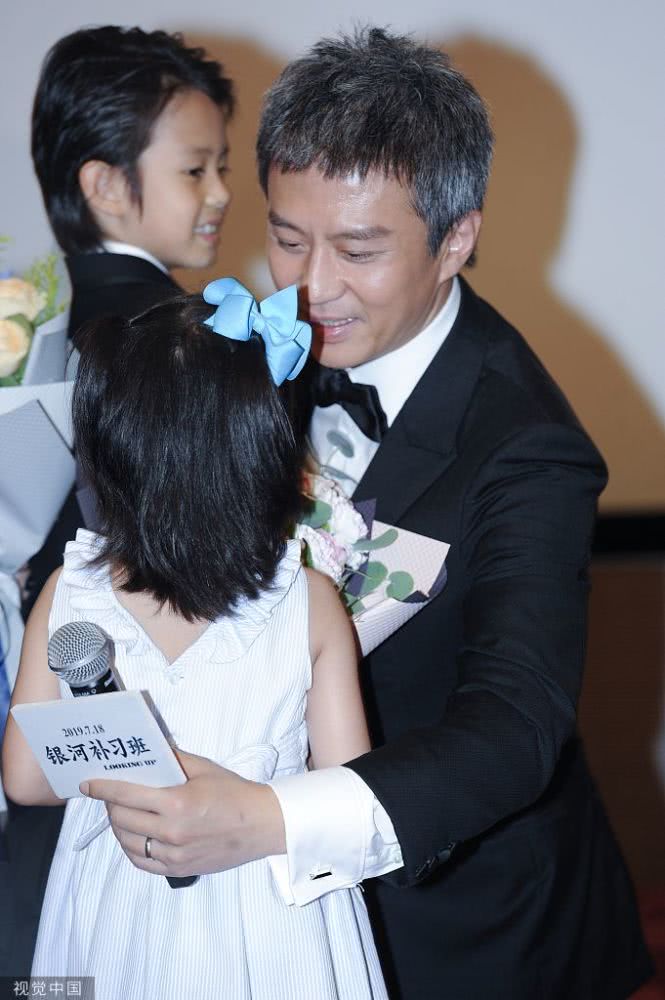 2019年7月11日,上海,鄧超新片《銀河補(bǔ)習(xí)班》上海首映,孫儷帶著等等、小花前來助陣,現(xiàn)場的鄧超一看就是個(gè)女兒奴,在現(xiàn)場和目光都不離開小花,又是親親抱抱,又是單膝跪地安撫,十足疼愛這位前世小情人。