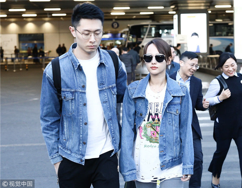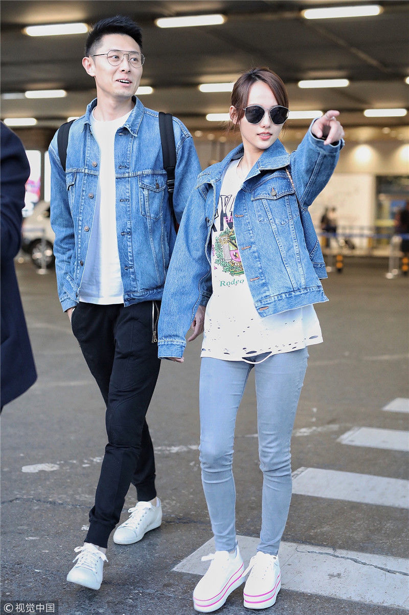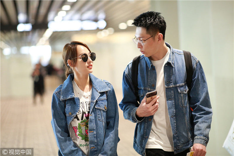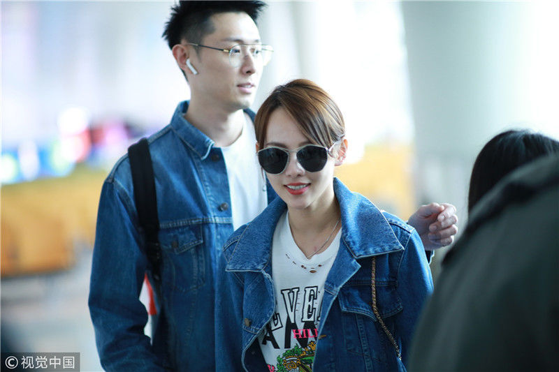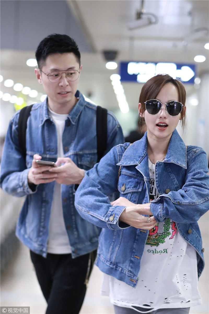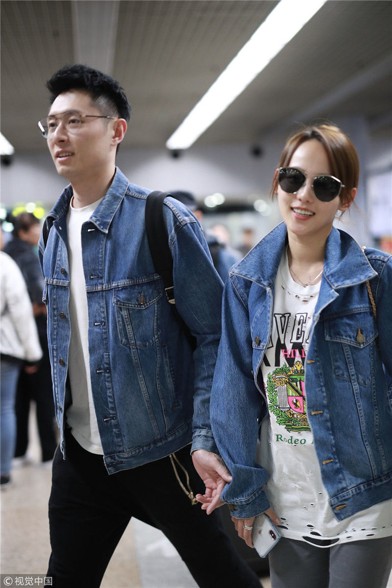 2019年4月1日,張嘉倪與老公買(mǎi)超現(xiàn)身機(jī)場(chǎng),從廣州飛往北京。兩人同穿情侶牛仔裝,一路對(duì)視熱聊感情超甜,張嘉倪對(duì)鏡頭熱情揮手舉公仔,親和力MAX。匿名/視覺(jué)中國(guó)編輯/陳進(jìn)