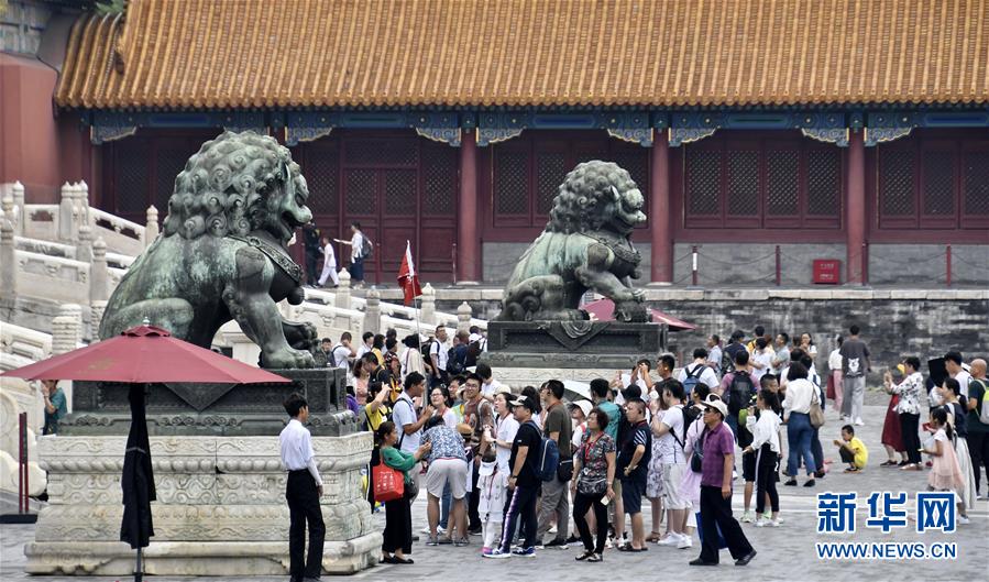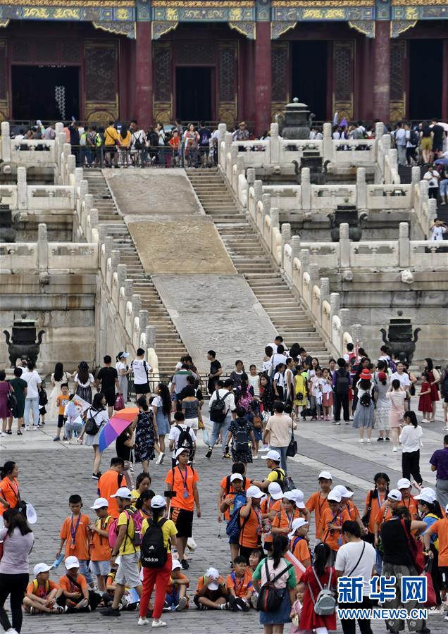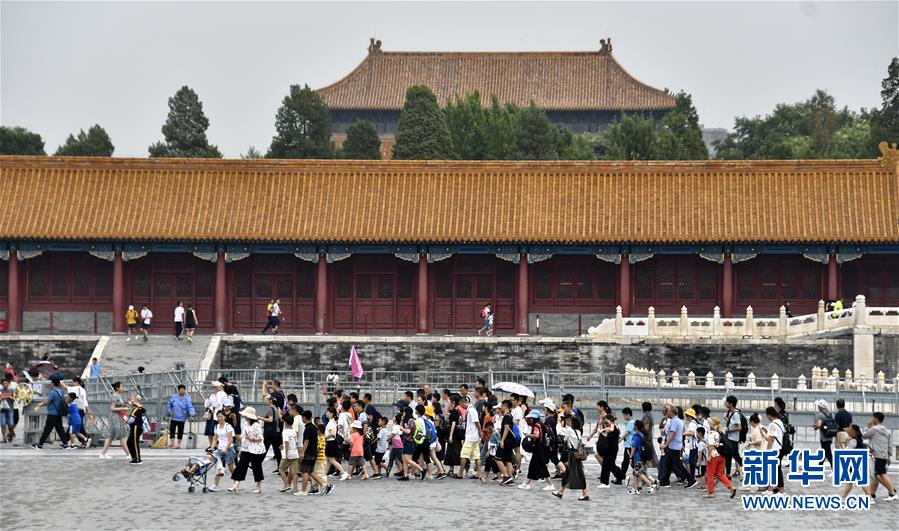 8月3日,游客在故宮參觀。進(jìn)入暑期以來,北京故宮博物院迎來游覽高峰。故宮博物院采取每日游客限流、熱點景區(qū)導(dǎo)流、供水和醫(yī)療保障等措施,確保游客安全。新華社記者李欣攝