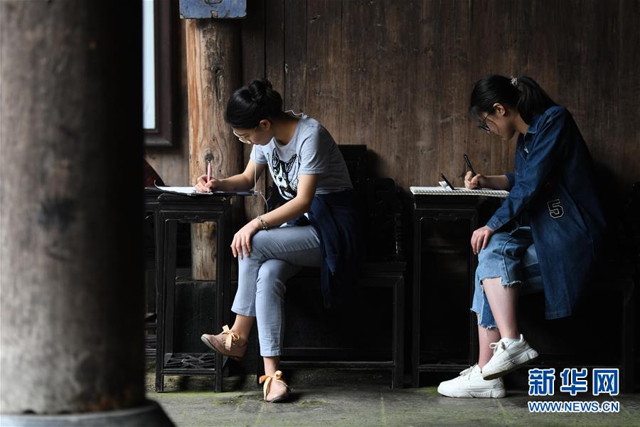 4月24日,繪畫愛好者在西遞風(fēng)景區(qū)寫生。近日,隨著氣溫升高,位于安徽省黟縣的古村落西遞和宏村春意盎然,景色如畫。大批繪畫愛好者前來寫生,用畫筆描繪古村春色。 新華社記者 張端 攝