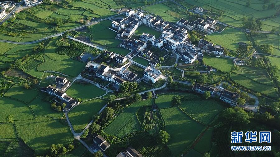 這是8月4日無(wú)人機(jī)拍攝的安徽黟縣宏村風(fēng)景區(qū)附近的村莊。新華社記者 張端 攝