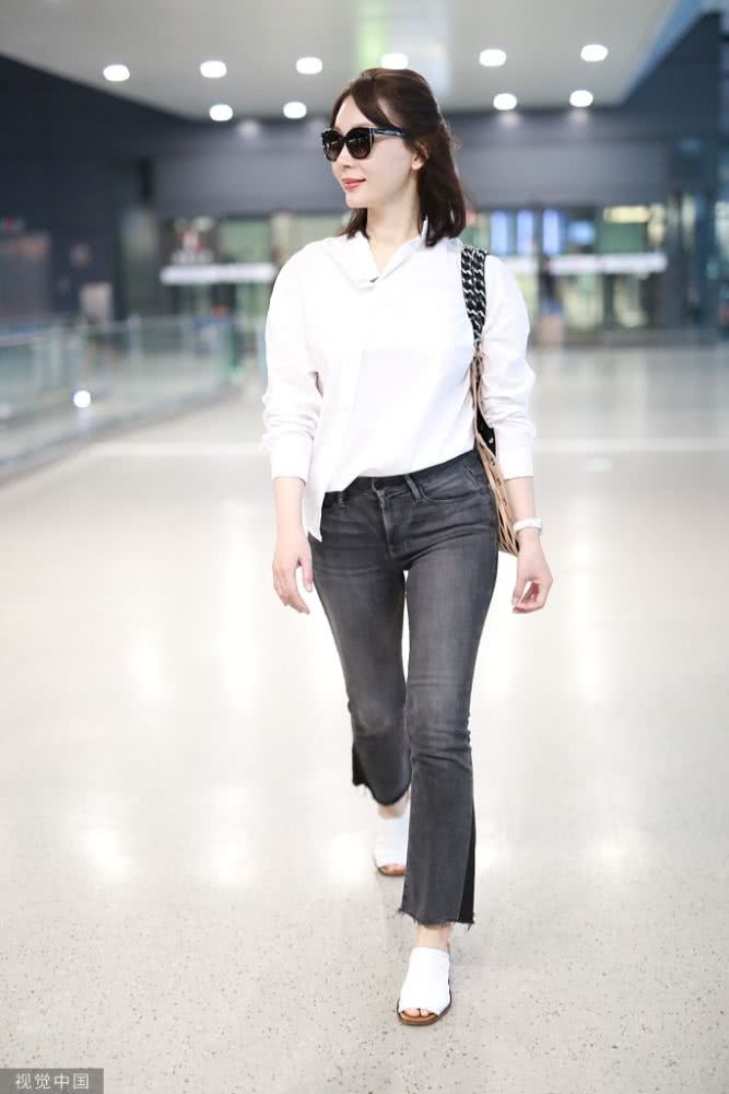2019年8月4日,上海,陳數(shù)現(xiàn)身機(jī)場。她穿白色襯衫簡約裝扮依舊知性干練,架黑超拎漁網(wǎng)紋展露職場女性魅力,露淺笑溫柔甜美超迷人。