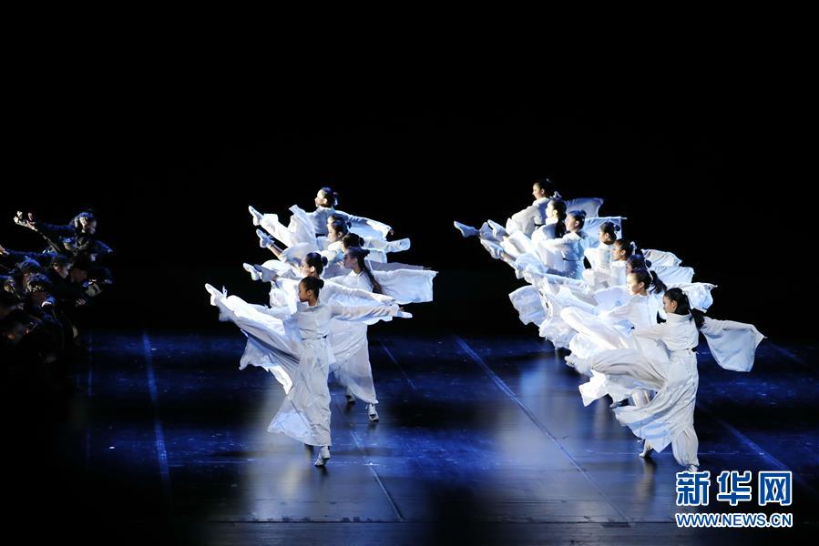 8月7日晚,舞蹈演員們在表演中。 當(dāng)日,“舞出中國風(fēng)”慶祝新中國成立70周年公益展演在上海國際舞蹈中心舉行。舞蹈家黃豆豆攜手30位青年舞者進行志愿演出,并與多家藝術(shù)團隊合作,共同呈現(xiàn)了一臺具有濃郁中國風(fēng)的原創(chuàng)舞專場,為新中國成立70周年獻禮。 新華社記者 劉穎 攝