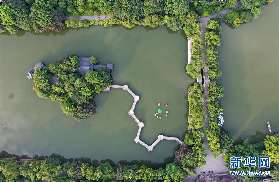 桂林市榕湖景觀(7月1日無人機(jī)拍攝)。 夏日時節(jié),廣西桂林市區(qū)內(nèi)的榕湖、杉湖、桂湖、木龍湖等地綠樹成蔭、景色迷人。 新華社記者陸波岸攝