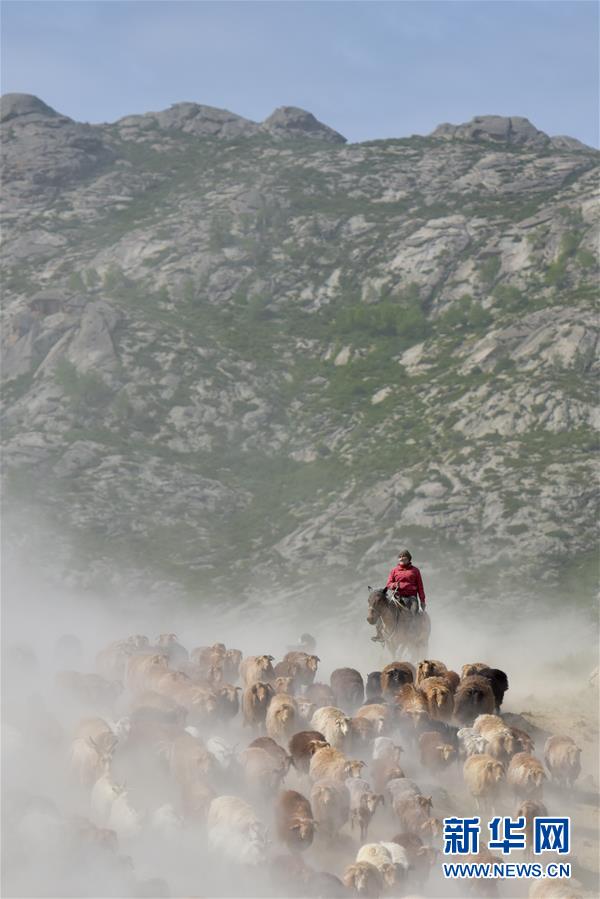 6月6日,新疆阿勒泰地區(qū)福??h牧民趕著牲畜向夏季牧場遷徙新華社記者 丁磊 攝