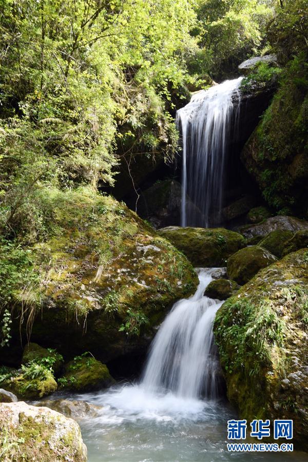 地洞河天坑底部的一處瀑布。位于陜西省漢中市寧強縣的地洞河天坑,是禪家?guī)r天坑群中規(guī)模最大的一處天坑,坑內(nèi)分布有石鐘乳、石筍,具有極高的地質(zhì)研究價值。新華社 張博文 攝