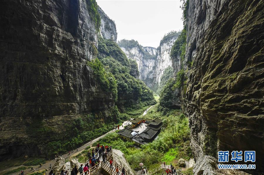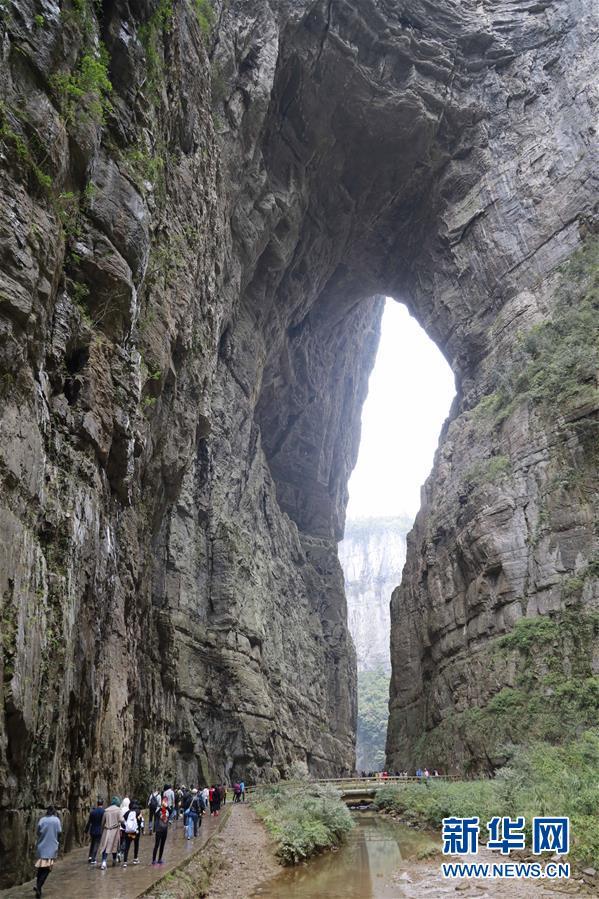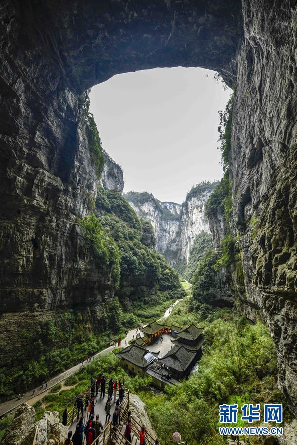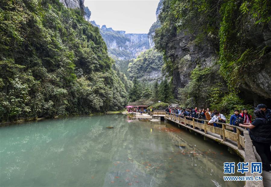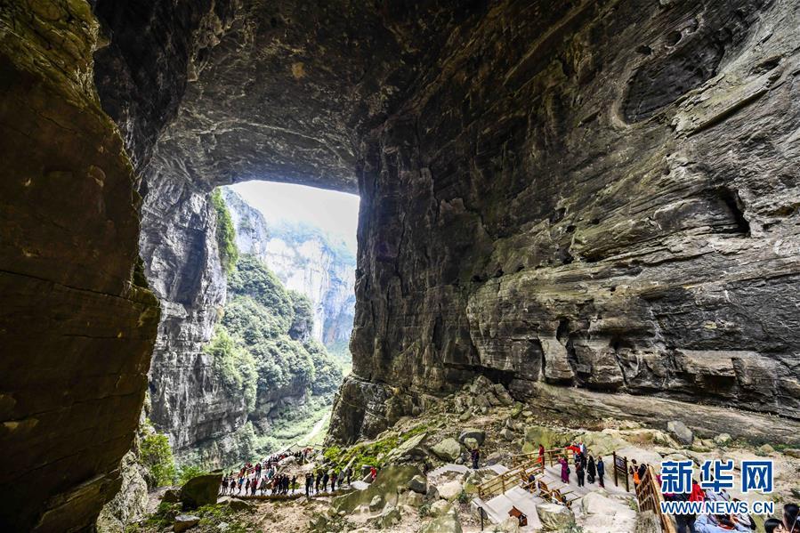 游客在天生三橋景區(qū)游覽(3月27日攝)。 隨著天氣轉(zhuǎn)暖,重慶武隆天生三橋景區(qū)風(fēng)景如畫,氣勢磅礴的天生石橋和綠意盎然的山林相映成趣,吸引眾多游客前來踏春賞景。 新華社記者劉潺攝