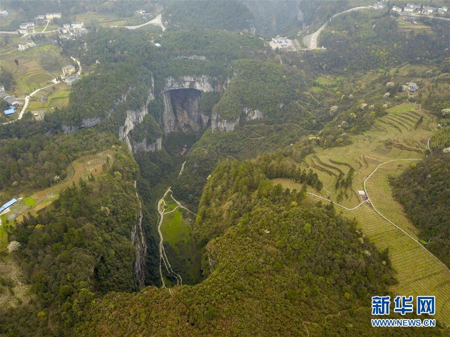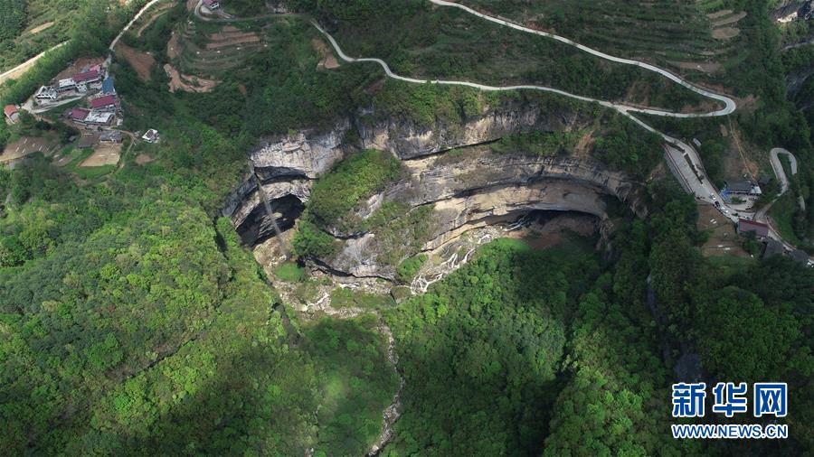 4月22日無人機拍攝的地洞河天坑。 新華社記者 張博文 攝
