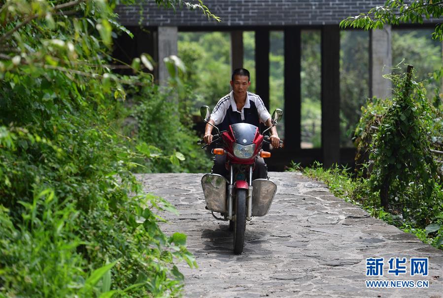 龍革雄騎車外出勞作(8月16日攝)。 新華社記者 黃孝邦 攝