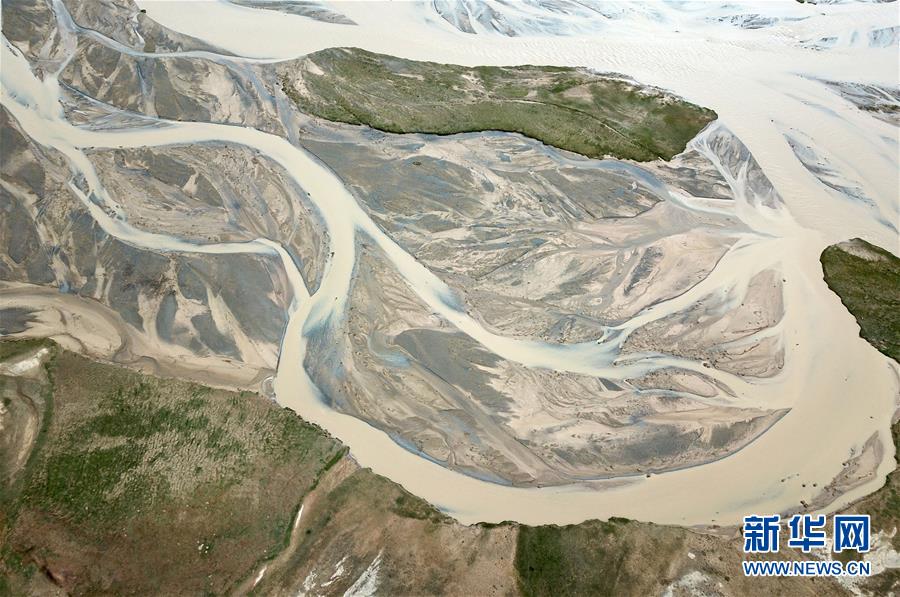 甘肅省酒泉市阿克塞哈薩克族自治縣境內(nèi)的大哈爾騰河(8月22日無人機(jī)拍攝)。新華社記者 馬寧 攝