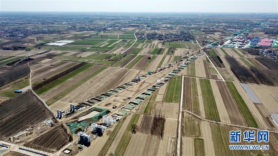 這是京雄城際鐵路施工現(xiàn)場(chǎng)(3月21日無人機(jī)拍攝)。新華社記者牟宇攝