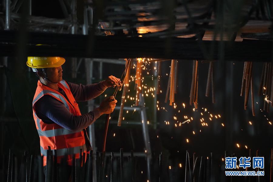 8月27日凌晨,施工人員在進行橋梁轉(zhuǎn)體施工。 新華社記者 楊世堯 攝