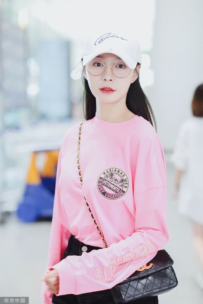 她戴著棒球帽身穿粉色衛(wèi)衣搭配熱褲,長腿纖細(xì)又白嫩。