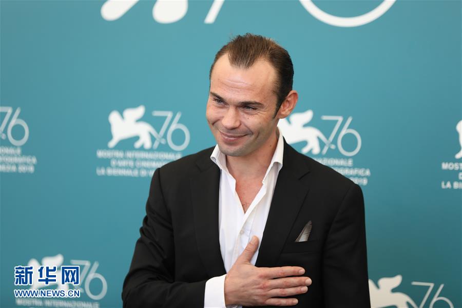 9月5日,在意大利威尼斯,演員讓-皮埃爾·達魯山出席電影《世界的勝利》拍照式。新華社記者 程婷婷 攝