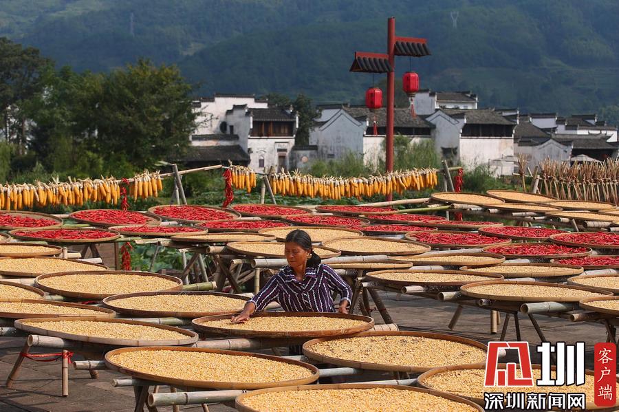 當(dāng)日立秋節(jié)氣,江西婺源縣篁嶺古村的農(nóng)作物普遍豐收,村民們又迎來了一年一度的“曬秋”季。