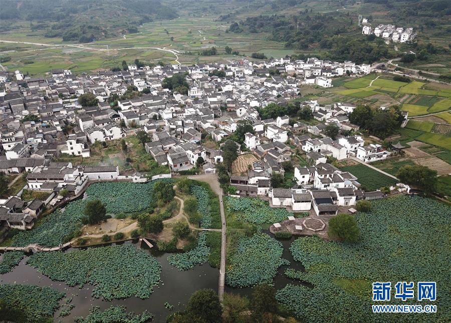 這是無人機(jī)拍攝的呈坎村(8月28日攝)。新華社記者劉軍喜攝