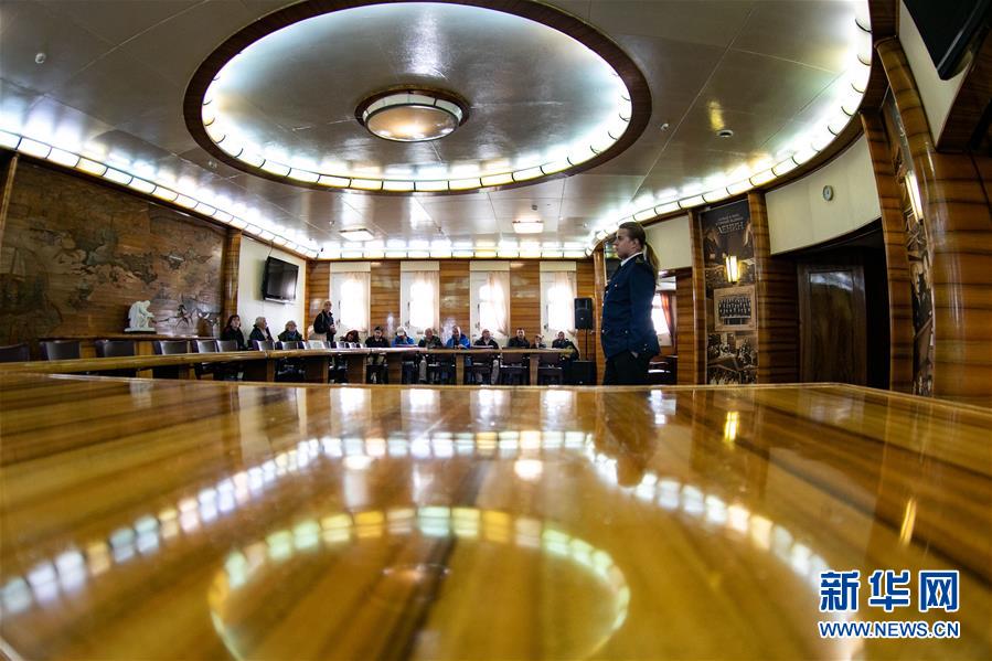 9月14日,在俄羅斯摩爾曼斯克,人們在核動力破冰船“列寧”號內(nèi)部參觀。 新華社記者 白雪騏 攝