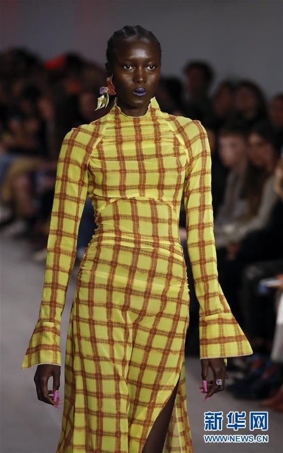9月17日,在英國倫敦,模特在2020倫敦春夏時裝周上展示Charlotte Knowles品牌服飾。  新華社記者 韓巖 攝