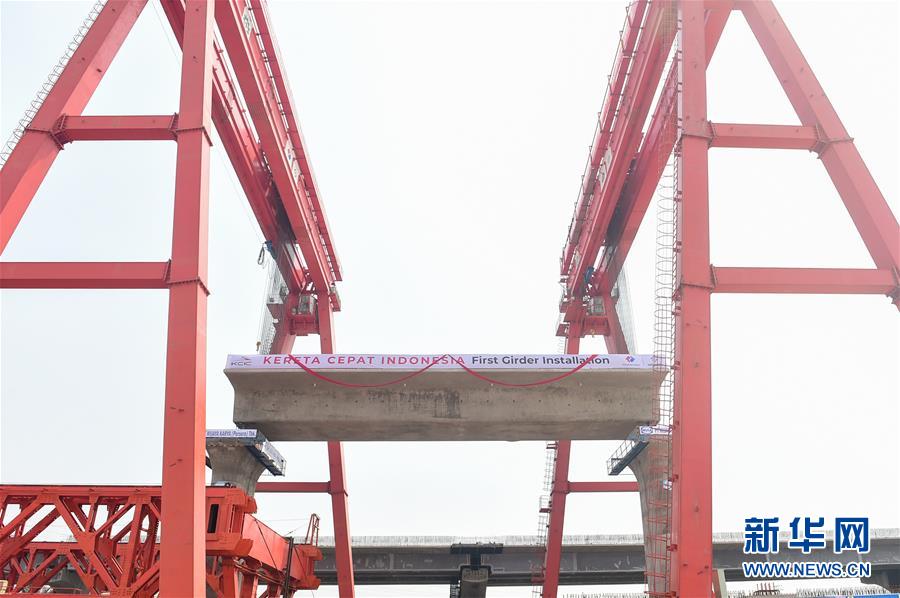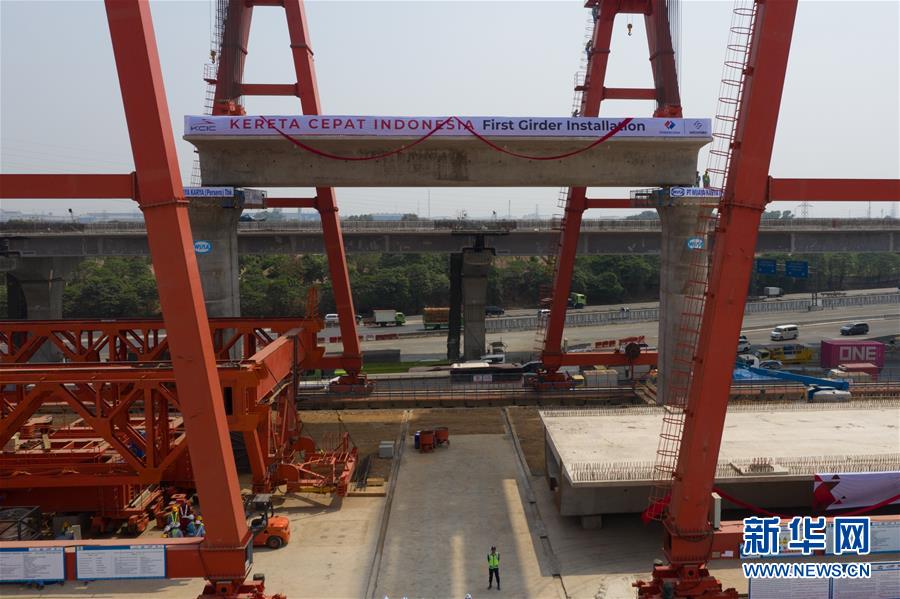 9月30日,雅萬高鐵全線首榀箱梁成功架設(shè)。 印度尼西亞雅萬高鐵全線首榀箱梁9月30日架設(shè)成功,高鐵建設(shè)繼續(xù)穩(wěn)步推進。雅萬高鐵全長142公里,最高設(shè)計時速350公里,2018年6月全面開工,總工期為36個月,今年是施工建設(shè)全面提速的關(guān)鍵年。建成通車后,雅加達至萬隆的時間將由現(xiàn)在的3個多小時縮短至40分鐘。 新華社記者 杜宇 攝