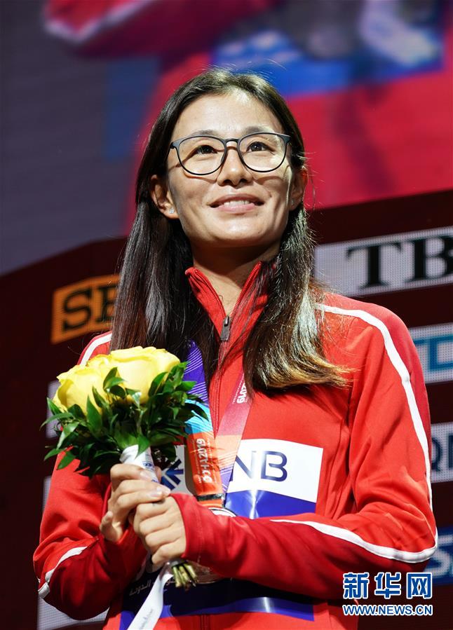9月30日,中國(guó)選手劉虹在頒獎(jiǎng)儀式上。新華社記者 徐速繪 攝