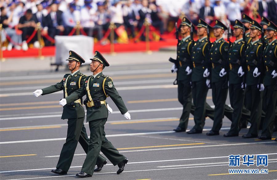 10月1日上午,慶祝中華人民共和國(guó)成立70周年大會(huì)在北京天安門廣場(chǎng)隆重舉行。這是行進(jìn)中的儀仗方隊(duì)。新華社記者王毓國(guó)攝