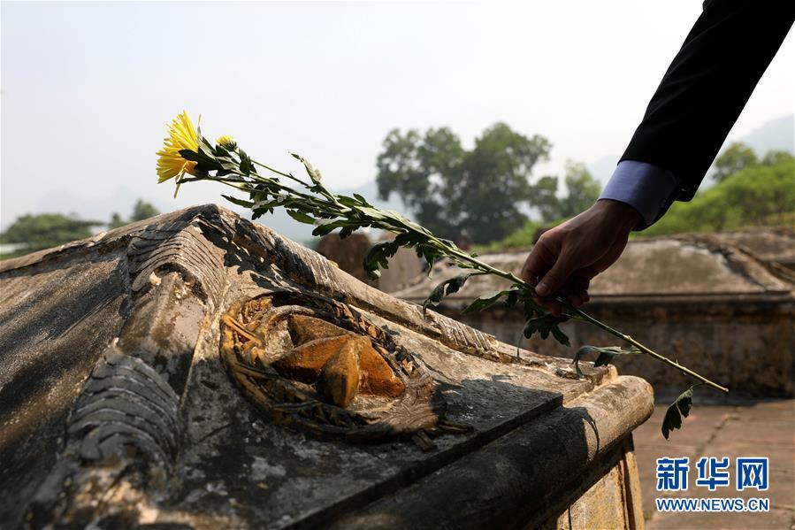 9月30日,在越南北部河南省,人們用鮮花祭奠中國(guó)援越烈士。 中國(guó)駐越南大使館館員、中國(guó)援越老戰(zhàn)士及其親屬、在越中資機(jī)構(gòu)和留學(xué)生代表等30日前往位于越南河南省的金榜烈士陵園,祭奠長(zhǎng)眠于此的14名中國(guó)援越烈士。越中友協(xié)副主席阮榮光等越方代表也參加了祭掃活動(dòng)。 新華社記者 王迪 攝