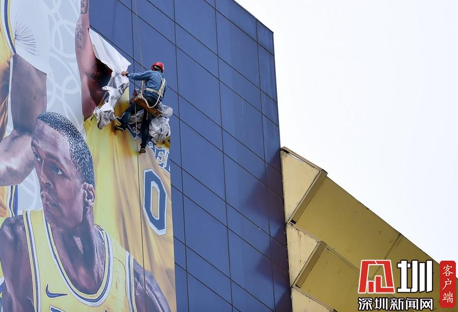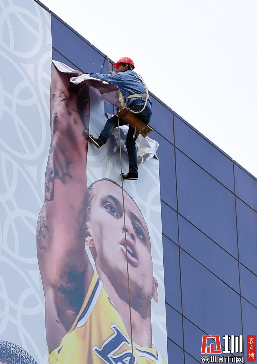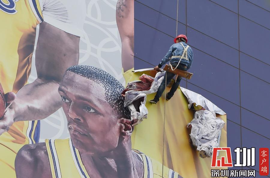 2019年10月9日,上海,“2019NBA球迷之夜”取消,上海正大廣場外圍巨幅NBA中國賽海報被拆除。