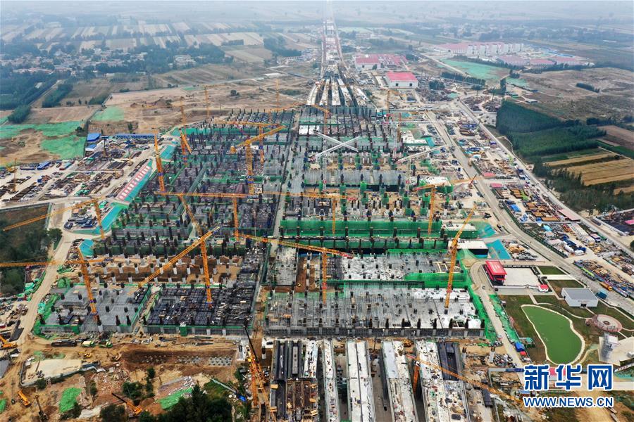 建設(shè)中的雄安站(10月10日無人機(jī)拍攝)。