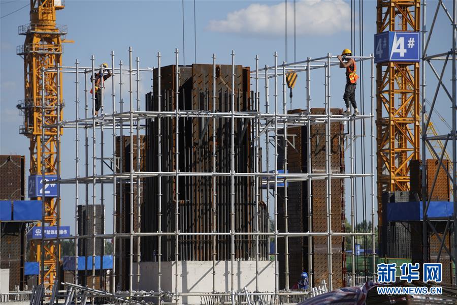 工人在京雄城際鐵路雄安站施工(8月29日攝)。新華社記者邢廣利攝