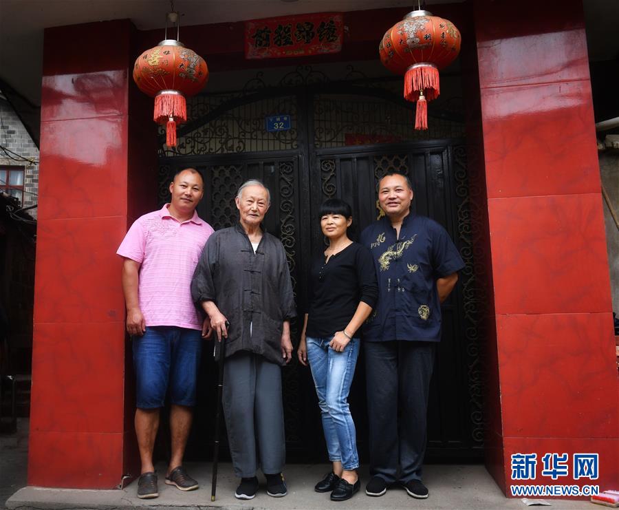 10月12日,丁國坤(左二)在家門口和他的徒弟們合影。新華社記者胡晨歡攝