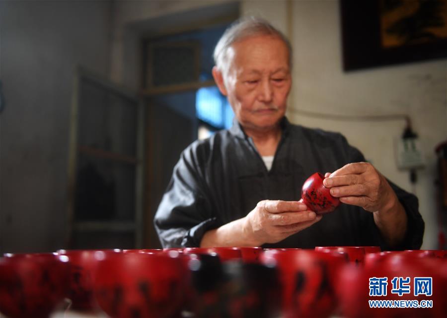 10月12日,丁國坤在家中檢查最新制成一批脫胎漆器的質(zhì)量。新華社記者胡晨歡攝