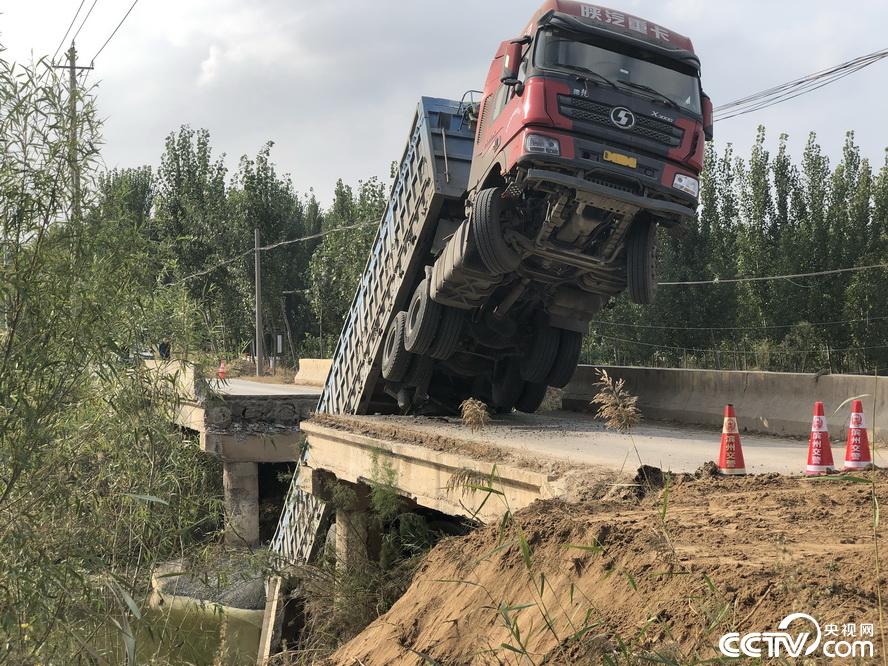 央視網(wǎng)消息:2019年10月13日,山東濱州,一輛滿載貨物的大貨車路過當(dāng)?shù)匾蛔鶎?米左右的小橋時,致使橋面坍塌。據(jù)報道,13日凌晨4點左右,一輛重型半掛貨車沿渤海十八路由南向北行駛至市西辦事處李茂家村附近,右轉(zhuǎn)彎進(jìn)入連接渤海十八路與李茂家村村西鄉(xiāng)間路的一座寬4米左右的小橋時,致使橋面坍塌?,F(xiàn)場貨車呈翹起之勢,車頭懸于半空中,車尾插入水中,事故未造成人員傷亡。據(jù)現(xiàn)場了解,該橋建設(shè)于1974年,橋頭有警示標(biāo)識,警示承載4噸。目前救援工作正在緊張有序地進(jìn)行中。視覺中國