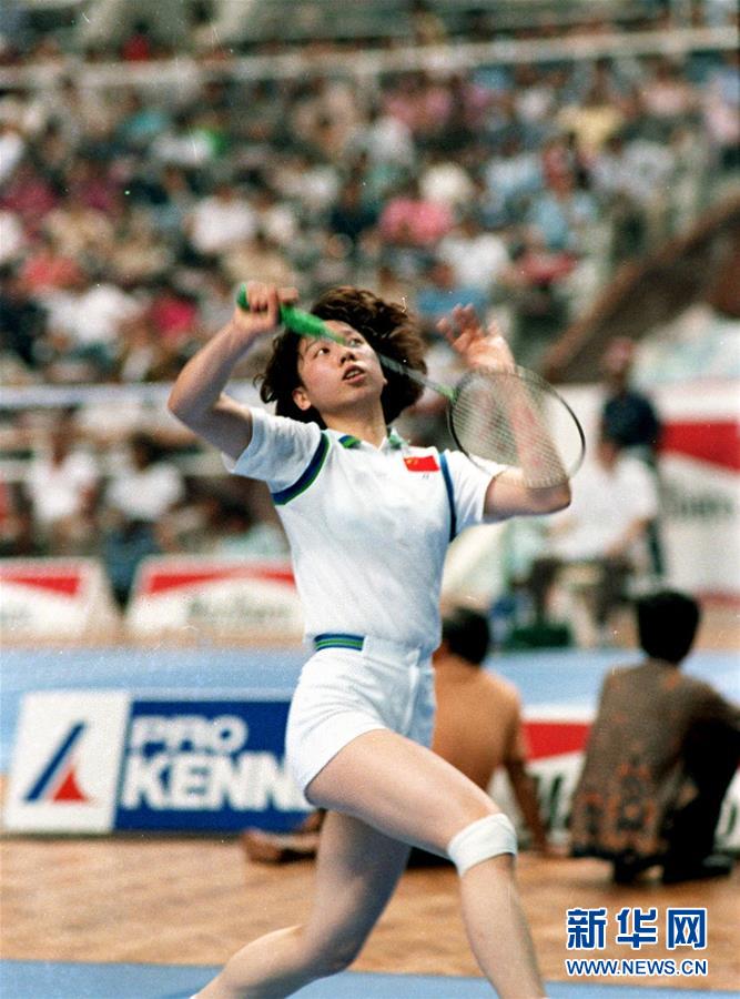 圖為韓愛萍在韓國漢城(首爾)舉行的第十屆亞洲運(yùn)動會羽毛球女子單打比賽中擊球(資料照片),她最終奪得女單冠軍。新華社記者胡越攝