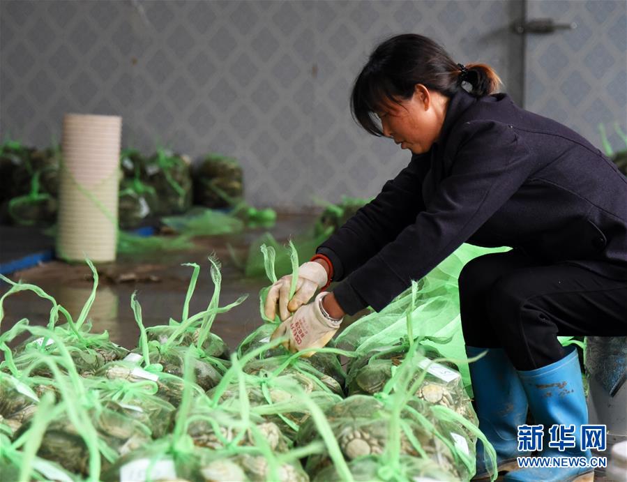 10月17日,東營市惠澤農業(yè)科技有限公司黃河口大閘蟹養(yǎng)殖區(qū)的工人在包裝大閘蟹。新華社記者 王凱 攝