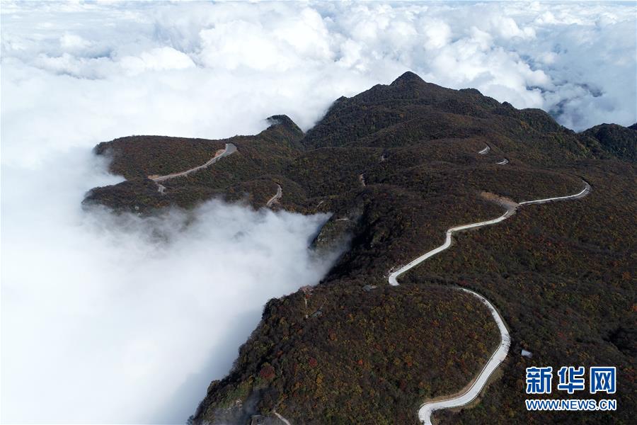 10月16日拍攝的漢中市南鄭區(qū)龍頭山風(fēng)景區(qū)(無人機拍攝)。  新華社記者 張博文 攝